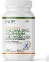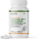 INLIFE Calcium Magnesium Zinc Vitamin D K2 Folic Acid Tablets for Women Men, 120 Tablets (120 Tablets)