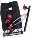 20 litre/5 gallon capacity and good heat absorption performance. Be made from non toxic and environmentally friendly PVC material. Equipped with a shower head, it is very convenient to control water yield. The handle of the bag can be reinforced by the hard plastic tube. It can be hung on the car or tree branches to take a bath when you are camping or hiking. It is quite a good product to make you clean and feel more comfortable after a long time expedition. This shower bag can be folded away into a small size for easy storage.