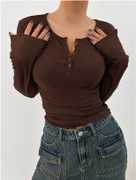 Design Features: Elegance meets playfulness with its timeless striped pattern in varying shades of white. The V-neck collar gracefully frames your neckline, subtly enhancing your allure without revealing too much. The front boasts five delicate buttons that not only add a touch of sophistication but also provide an elegant closure option. Versatile roll-up sleeves offer the flexibility to switch between a relaxed or chic look, depending on your mood and the weather. Material and Comfort: Crafted with meticulous attention to detail, this top is made from a premium blend of fabrics that guarantee a harmonious blend of comfort and style. It drapes gracefully on your body, ensuring you feel at ease throughout the day. Seasonal Versatility: This top is designed to seamlessly transition through the seasons. Whether you're embracing the crisp autumn air, staying cozy by the winter fireside, or enjoying a springtime picnic, this top is your year-round fashion companion. Layer it with a cozy cardigan for extra warmth or wear it solo to make a statement. Pairing Options: Your styling possibilities are boundless. Pair it with your favorite jeans for a casual, laid-back look, tuck it into a skirt for a polished appearance, or layer it beneath a blazer for a sophisticated ensemble. The versatility of this top ensures you'll always find the perfect outfit combination. Sizing Options: Our dedication to inclusivity means this top is available in a diverse range of sizes, ensuring an impeccable fit for every body shape.