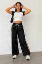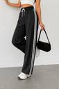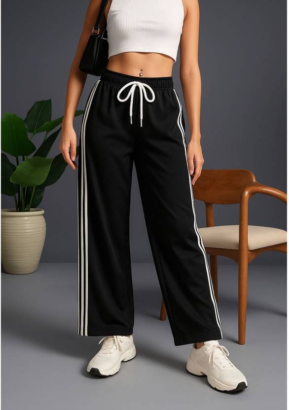 Step into effortless style with these Women’s Black Side-Stripe Wide-Leg Trousers – designed for the modern woman who wants comfort without compromising fashion. Crafted from 4D Flow Fabric, these trousers drape smoothly, move freely, and keep their shape all day. The signature double-stripe detail runs from hip to hem, creating a visually slimming, athletic silhouette that stands out.