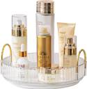 360° easy rotation can bring you a more convenient experience, The rotating base is smooth, and the tray edge is high enough to prevent cosmetics from falling when rotating makeup. This makeup display case for vanity has 1 layer without partition and can be placed according to your own preference. It can be used to display perfume, cosmetics, and toiletries to meet your daily needs while saving space for you. The cosmetic display case is made of thickened ABS plastic and golden color plated iron bars, strong and durable, it can protect your items from shaking or tipping over. This perfume display case for dressers can be used as a perfume holder display case, countertop, dresser display case countertop, skincare display case, makeup holder, etc. The bedroom, dresser, and desk countertop are good places to place them.