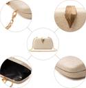 This wedding evening bag has shiny and Leaf shape snap closure, which is simple and elegant, fashionable and unique in design. It is suitable for matching with different styles of clothes, making you unique in the crowd. This clutch has rectangular shape with roomy space, it can easily carry your sunglasses, cards, keys, lipstick & cellphones. The comfortable design enables you to hold it in your hand. The clutch includes a gold chain, allowing the purse to be used as a shoulder bag, crossbody bag ideal for attending different events. Ideal for weddings, champagne events, dinner parties. Also a wonderful gift for your special someone on Valentine's Day, Mother's Day.