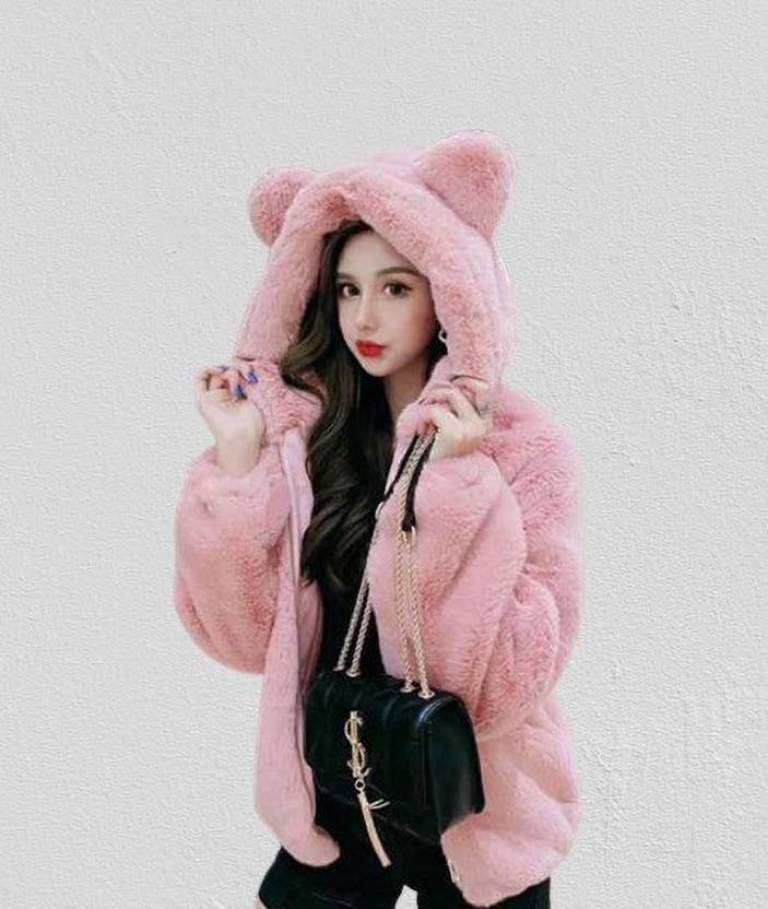 Boasting a charming solid pattern, this women’s jacket adds a touch of timeless style to your winter wardrobe. Additionally, the hood features up to two adorable ears, enhancing this jacket's playful and unique look. You can pair it with a chunky knit scarf and faux leather boots for a cosy and stylish winter ensemble.