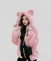 Boasting a charming solid pattern, this women’s jacket adds a touch of timeless style to your winter wardrobe. Additionally, the hood features up to two adorable ears, enhancing this jacket's playful and unique look. You can pair it with a chunky knit scarf and faux leather boots for a cosy and stylish winter ensemble.