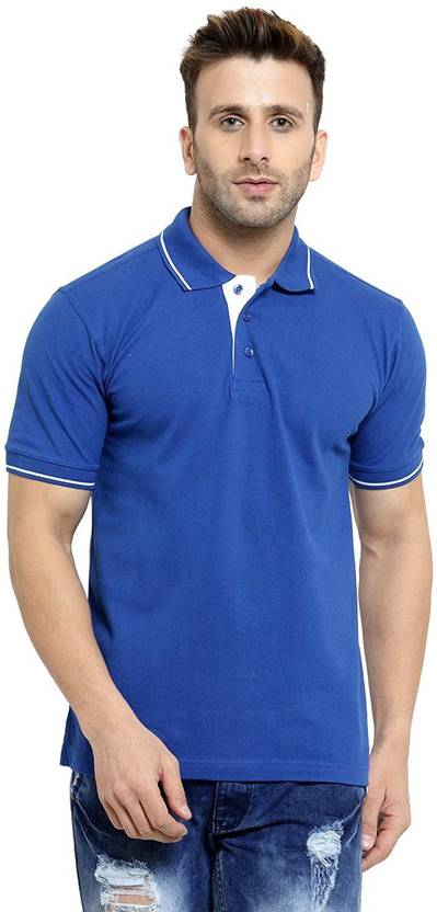 Inspire Tees Men Solid Polo Neck Pure Cotton Blue T-Shirt