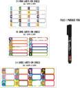 | Key Features | PACK CONTENTS & SIZES: 66 Write-on Name Labels & Tags: 24 x Mini Labels (33mm x 13mm), 18 x Long Labels (72mm x 12mm), 24 x Large Labels (56mm x 25mm). Includes a permanent marker pen for writing., FEATURES: Labels are Microwave-safe, freezer-safe, UV-resistant, tear-resistant, dishwasher-safe and BPA-free., USAGE: For all Kids / School Items - Water bottles, Food containers, Snack / tiffin boxes, Camping gear, Sporting goods, Electronic devices. Super useful for organizing items at home as well., INSTRUCTIONS FOR USE: See video for instructions., INSTANTLY CUSTOMIZABLE: Writeable, Self-laminating labels with an extra layer provide protection from water, smudging and rubbing off., DURABLE: The labels stay in place over time without peeling and are removable without leaving a sticky residue behind., NOTE: Always stick labels on to a flat, dry surface. Allow 24 hours before washing.