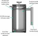 InstaCuppa French Press Coffee M0122 10 Cups Coffee Maker (Copper)