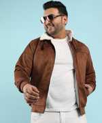 This stylish regular fit jacket in the display has full sleave . Inside one pocket and branded zippers, this faux leather jacket is light in weight and will ensure cofort all time.