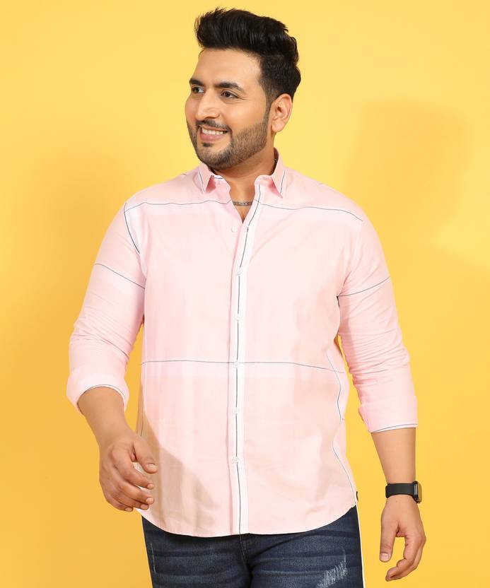 Instafab Plus Men Solid Casual Pink Shirt