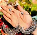 long moti stone bali Crystal Silver Chandbali Earring