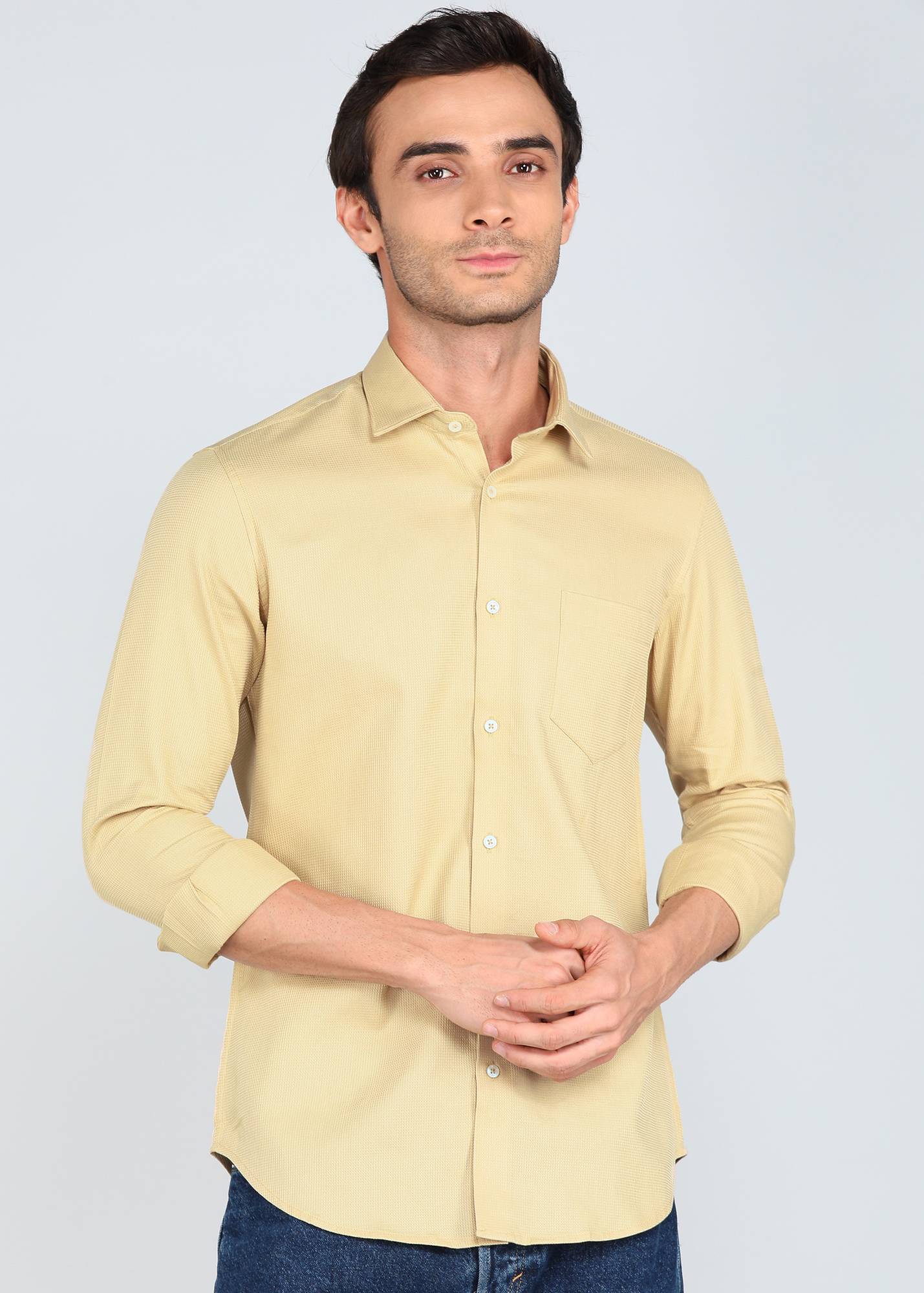 Integriti Mens Beige Full Sleeve Solid Formal Shirts