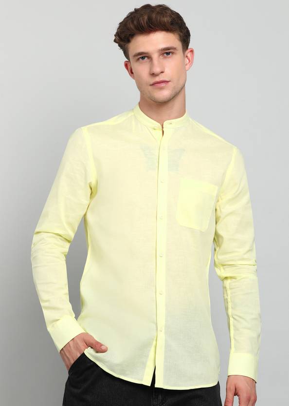 Men Slim Fit Solid Mandarin Collar Casual Shirt