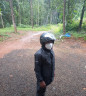 Product comes in a bag. Two layer. And inside rubber and out side thing red polyester. Chain is present. Very tight wrist. Pant also has two layer.
