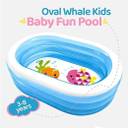Presents Inflatable Oval Whale Pool for Little Swimmers children love to have fun in water and what better way than to let them enjoy in this amazing swimming pool. The inflatable rectangular pool brings a replica of a real pool for use in the open space. All you need to do is place it in your garden or in the open terrace and fill it with sufficient water. Kids will enjoy bathing under the sun in a place surrounded by flowers and trees. The inflatable pool is an outdoor fun accessory which is easy to use. The make-believe pool is made of thick and durable blue inflatable plastic which makes it last long.