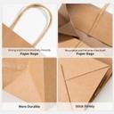 | Key Features | - Eco-Friendly Material:-Made from 100% recyclable and biodegradable kraft paper, the best alternative to plastic bags., Strong & Durable** – Sturdy twisted paper handles and thick kraft paper ensure it can carry heavy loads easily., Multi-Purpose Use** – Perfect for shopping, gift packing, party favors, groceries, retail stores, and daily use., Reusable & Recyclable** – Can be reused multiple times and is environmentally friendly., Plain & Customizable** – Simple brown design allows easy branding, stamping, stickers, or decoration., Compact & Foldable** – Easily foldable for convenient storage.Wide Applications** – Ideal for food delivery, clothing stores, gifts, parties, and return favors.