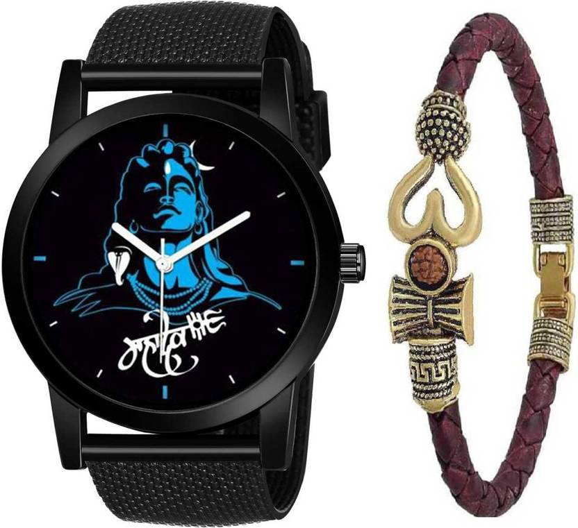 RHREDHEART Analog Watch - For Boys New Mahadev Black Dial & Black Pu Belt & Om Brown Belt Next Generation Style Watch & Bracelet Combo - For Boy Analog Watch - For Boys
