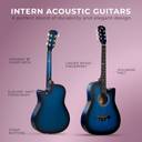 Sporting a cutaway design, the 96.52 cm (38) Intern INT-38C-BL Acoustic Guitar allows your fingers to conveniently reach and access even the high frets. And, as the top of this acoustic guitar is made from spruce and the back and sides from apathies, it produces a deep and rich tone and sound.