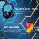 Headphone hook, cup holder, and cable management system keep your setup organized and clutter-free.