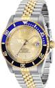 The Invicta 29181 has a 42 mm stainless steel silver and gold case, a gold dial and steel gold SS band.This model is powered by an accurate Automatic movement. Resistant to water up to 200 meters.This model is part of the Invicta Pro Diver collection.Including 2-year Invicta warranty.