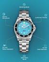 The INVICTA 47356 model is part of the Pro Diver collection; this watch comes with a 40 mm Steel case, Blue, Turquoise dial protected by Flame Fusion crystal, powered by a Quartz movement completed by a Stainless Steel band. Water resistant up to 200 meters, protected by Invicta 2-year warranty