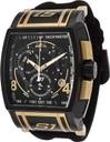 Boasting an audacious appearance, the rounded rectangle metal dial rests beneath a mineral crystal. Featuring a 1/10th-seconds subdial near 2:00, a 60-seconds subdial above 6:00 and a 30-minute subdial near 10:00, this Invicta measures with precision. Creativity and class merge with a tachymeter scale circling the outer dial and a 12-hour counter rounding the centered top ring. Case coordinating Arabic numerals call out their positions at 4:00 and 8:00 with absolute clarity. Luminous Tritnite hour and minute hands enlighten the dial with their case coordinating trim while the subdial hands gesture in your choice of solid gold-tone or rose-tone. The Invicta name and logo appear below 12:00 with bravado while the Swiss Made stamp settles at 6:00. A date window shows itself near 4:00 and completes this intrepid dial.