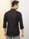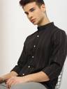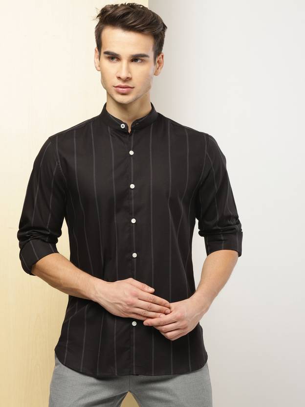 Black and white striped casual shirt, has a mandarin collar, long sleeves, curved hem Sharpen up your style with this in-style shirt by INVICTUS. Make it to your next business meeting or formal event wearing this black shirt with slim trousers and brogues.