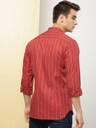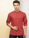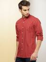 Rust orange and white striped casual shirt, has a mandarin collar, long sleeves, curved hem. Youll love the design of this high-fashion INVICTUS shirt. For a night at the movies or casual dinner date, team this rust shirt with slim trousers and light jacket.