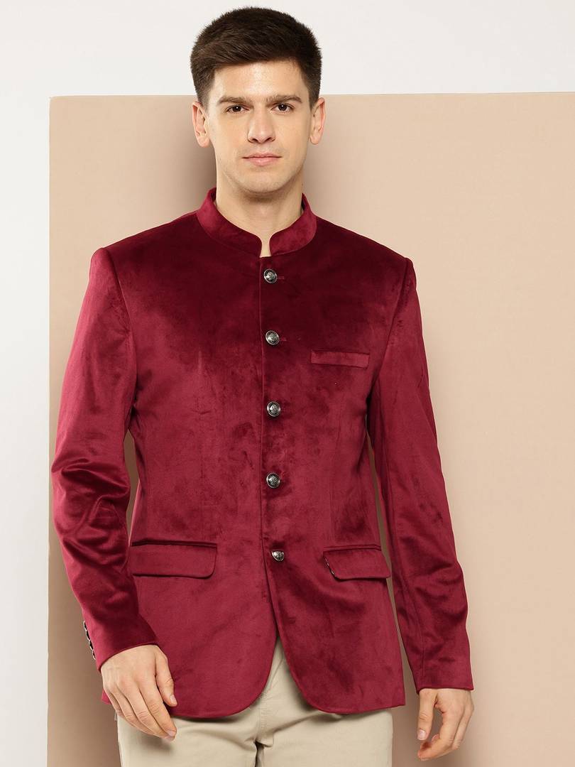 INVICTUS Solid Double Breasted Party Men Blazer (Maroon)