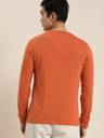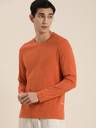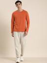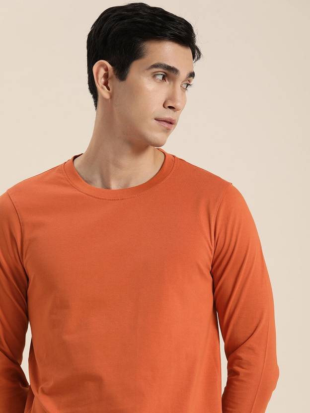 Rust orange T-shirt for menSolidRegular lengthRound neckLong, regular sleevesWoven cotton fabric.