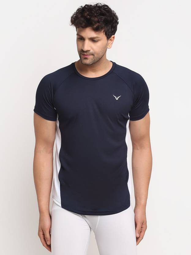 Invincible Colorblock Men Round Neck Dark Blue T-Shirt