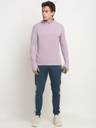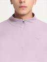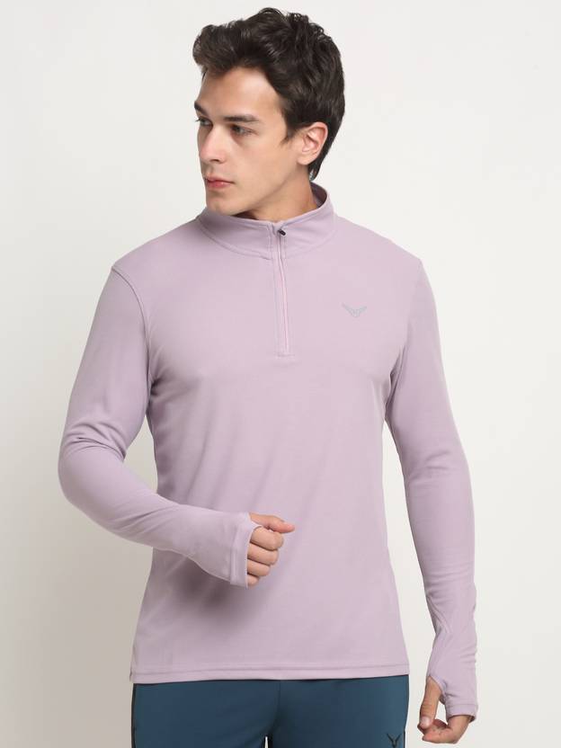 Men's quarter zip polyester pullover tee with a thumb hole design.