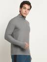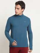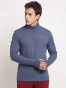 Men's quarter zip polyester pullover tee with a thumb hole design.