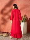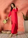 RED MANDERIAN NECK HIGH LOW KURTA SET