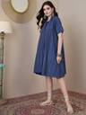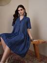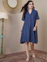 The Indigo Stripe Kantha Collar Dress is a timeless fusion of heritage craftsmanship and contemporary style. Made from breathable fabric in a rich indigo hue, this dress features striking vertical stripes that create a flattering, elongated silhouette.