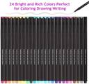 Vivid 24 Color Fine Line Pen Set, 0.4mm Fine Pen Tip Is Suitable for Writing and Drawing Without Penetrating Paper. This Fine Line Pen Adopts Durable Metal Pen Tip, Which Can Prevent the Pen Tip from Swinging or Breaking. It Is Very Suitable for Coloring. It Is Suitable for Diary, Planning Book, Calendar, Agenda, Notes, Painting, Writing, Coloring, Sketch, Marking, Signature, Cartoon, Design, Illustration and Children Graffiti, Scrapbook Notes, Coloring Small Complex Patterns, Diy Photo Album Diary, Etc.