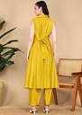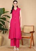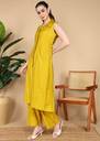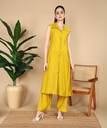 Elevate your everyday style with this elegant Yellow sleeveless co-ord set, designed for both comfort and sophistication. The long button-down tunic with a classic collar pairs effortlessly with relaxed straight-leg pants, creating a sleek and contemporary look. Perfect for casual outings, office wear, or brunch dates, this outfit combines effortless grace with modern minimalism.Not :-Attachable sleeves are also being provided with it.