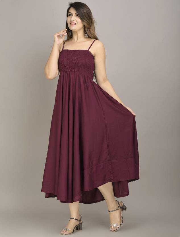 Solid Rayon Blend Stitched Flared/A-line Gown (Maroon)