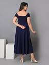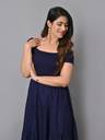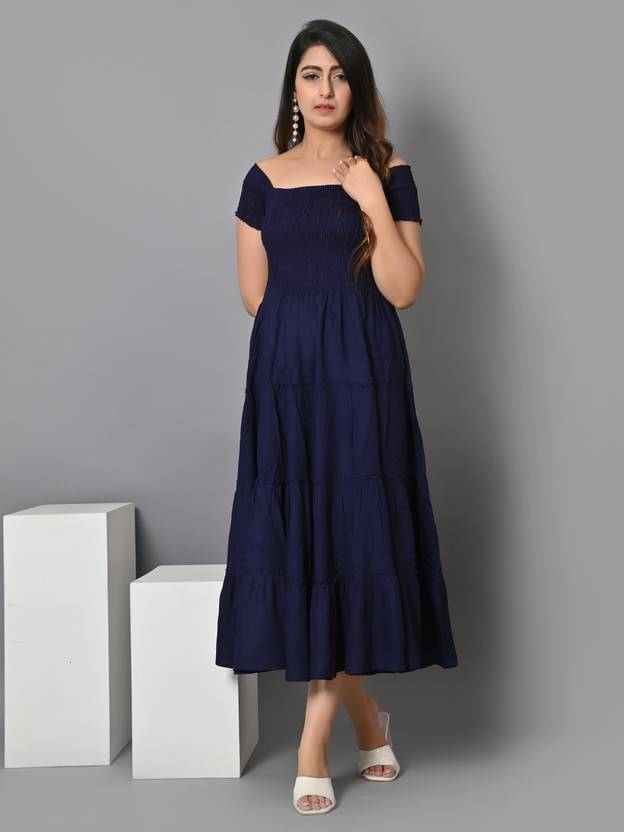 IQRAAR Women Fit and Flare Dark Blue Midi/Calf Length Dress