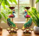 IRONAIKA Candle peacock light multicolour set of 2 Decorative Showpiece - 30 cm (Iron, Multicolor)