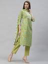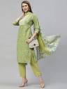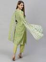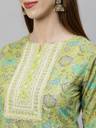 This elegant green ethnic dress embodies a harmonious blend of tradition and modernity. Crafted with meticulous attention to detail, the dress features intricate ethnic patterns and exquisite embroidery that showcase the rich cultural heritage it represents. The soft, blush pink hue exudes a sense of femininity and grace, complementing a variety of skin tones with its flattering appeal.
