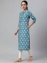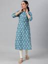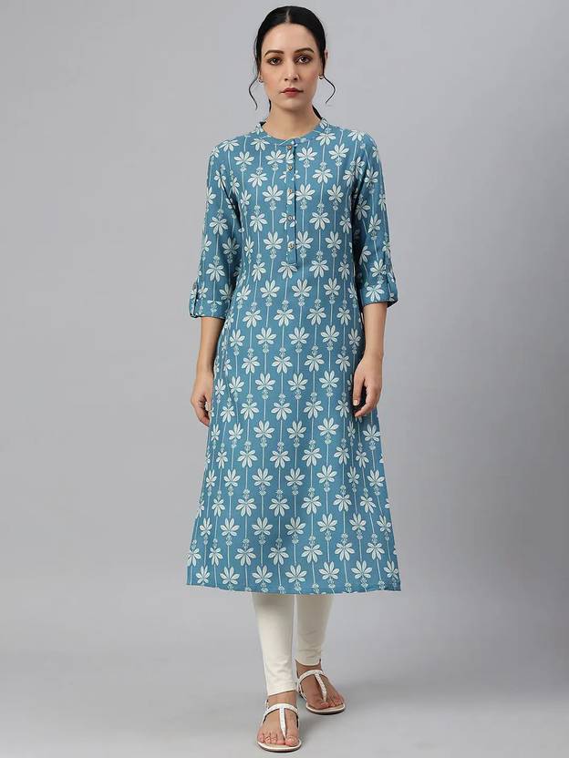 Isha e Kart Women Floral Print A-line Kurta (Dark Blue, White)