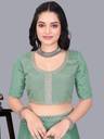 Style: Solid/Plain saree with Lace Border, Saree Colour: Pista Green, Blouse Colour: Pista Green, Saree Fabric: Georgette, Blouse Fabric: Art Silk, Saree Length: 5.5 mtr, Blouse Length: 0.8 mtr, Saree Pattern: Embellished Saree, Season: Any, Occasion: Wedding, Festival, Bridal, Party, Causal, Contains: Single Saree with Unstitched Blouse Piece