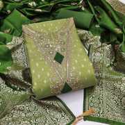 The Isha Trade Embroidered Unstitched Salwar Suit Material creates a visual feast for your eyes. The intricate Codding work comes together harmoniously, creating a captivating ensemble. Moreover, the detailed embroidery is carefully executed with attention to detail, thereby showcasing the work of expert craftsmanship.Thanks to its unstitched top which is crafted from Simmer Silk Jacquard and santoon bottom, this suit set offers you the freedom to customise the material according to your personal preferences and body requirements. You can tailor a kurta set, a patiala, a churidar, or a timeless salwar suit as per your styling choice or occasion. In addition, you can also incorporate extra embellishments or additional elements to further elevate this material’s design. Moreover, as this suit set comes with a generous amount of fabric, you won’t have to worry about getting some extra fabric to stitch your suits.