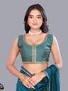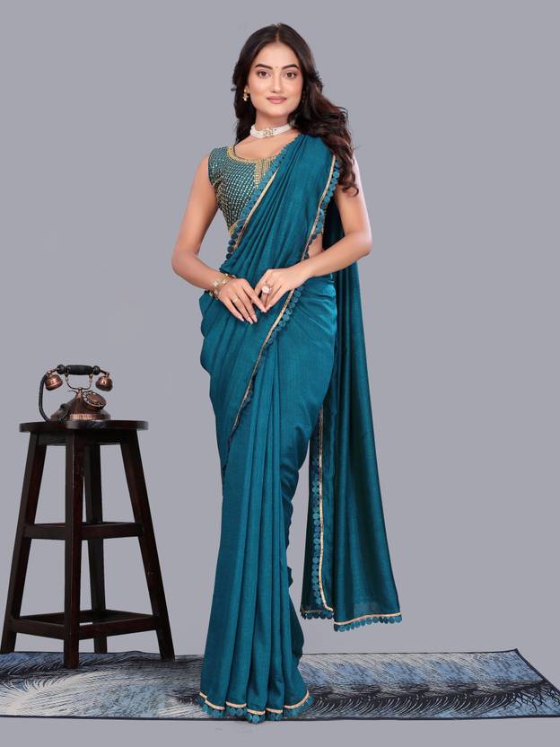 The saree features a soft, lightweight fabric that offers all-day comfort and a smooth drape. It is paired with a matching embroidered blouse, adding a touch of sophistication and modern elegance.