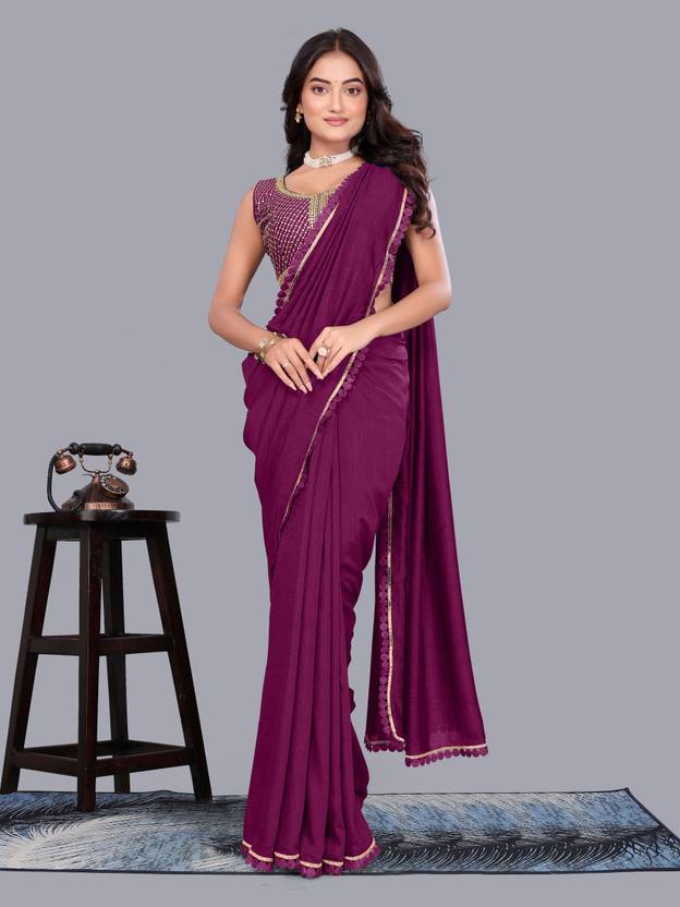 ISHA TRADE Solid/Plain Bollywood Georgette Saree (Pink)