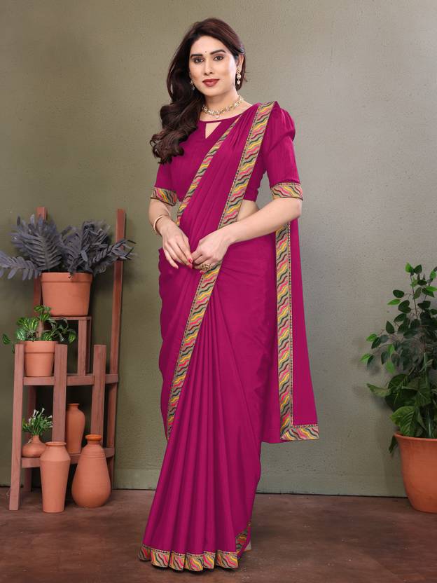 ISHA TRADE Solid/Plain Bollywood Georgette Saree (Pink)