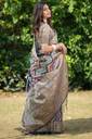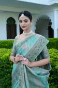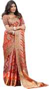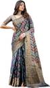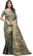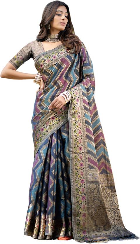ishika fab Woven, Geometric Print Banarasi Organza Saree (Multicolor)