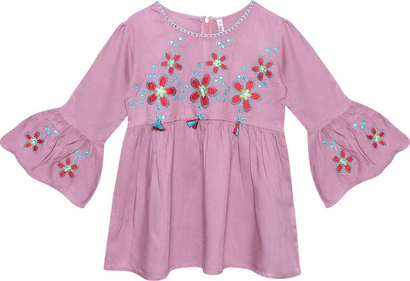 Girls Party Rayon Tunic Top (Purple, Pack of 1)
