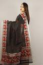 Raniphee: Shiny floral embroidery throughout the middle and bordered with Silver color shiny temple linings at the bottom.