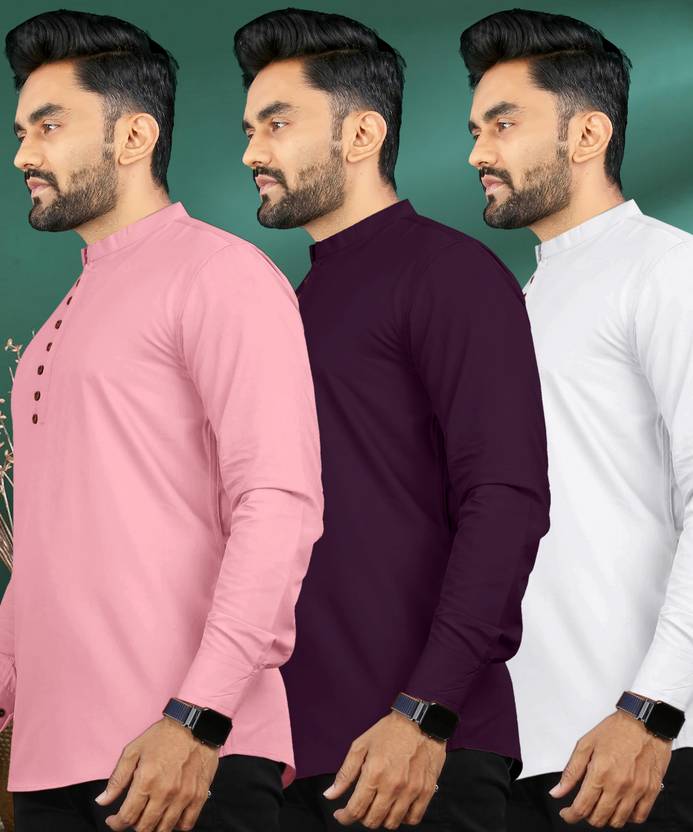 Cotton Fabric Full Sleeve Solid Casual Kurta For Men